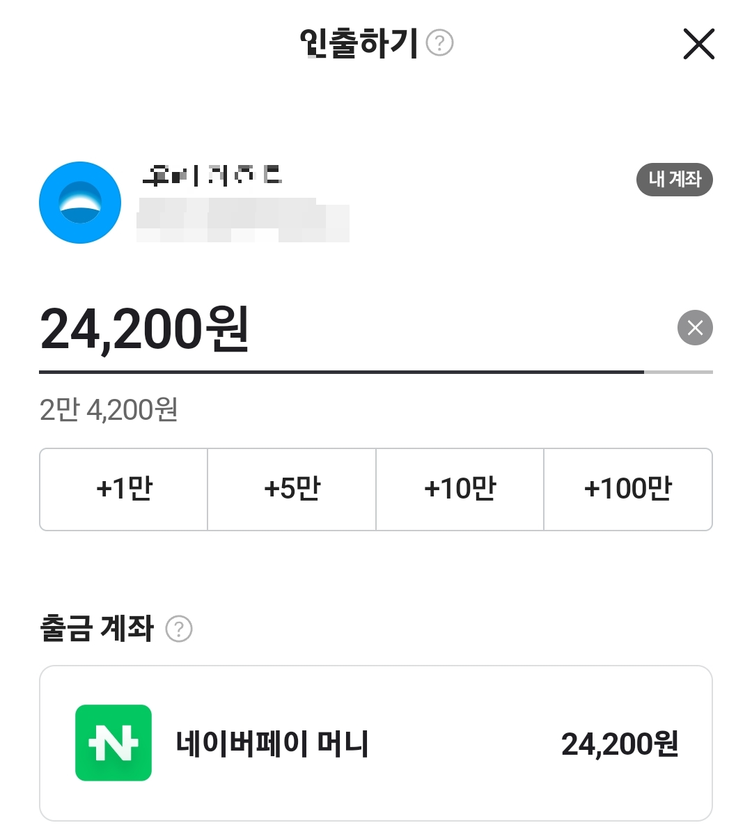 4. 은행 계좌를 연결한 뒤 인출하기를 눌러 인출 할 금액을 입력합니다. 인출하는 금액은 수수료 없이 전액 인출이 가능합니다.