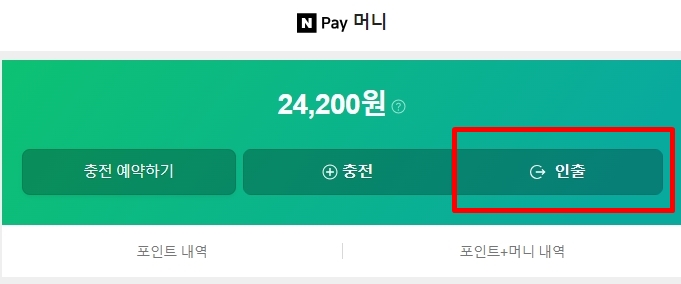 1. 네이버페이 머니 현금화를 위해 N페이 머니에서 인출을 눌러줍니다.