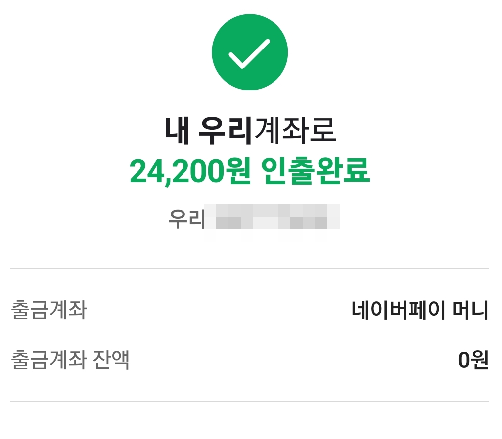 5. 신청 즉시 인출이 완료 됩니다. 네이버페이 머니 인출까지 아주 간단한 방법으로 진행이 되었습니다.
