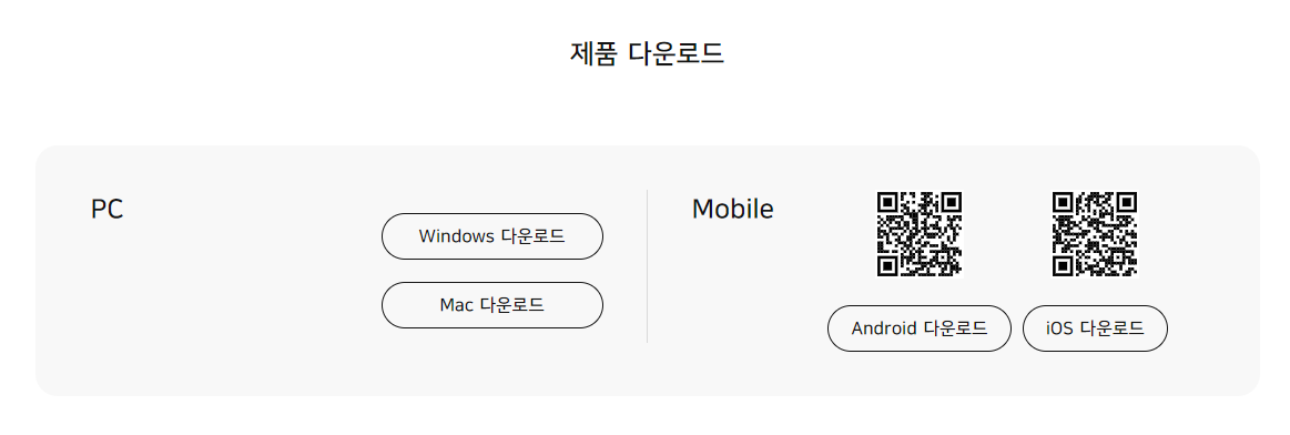 다운로드 화면에 들어가시면 PC, 모바일 구분이 뜹니다. 노트북 등 PC다운로드의 경우 윈도우, 맥을 구분해줍니다. 맥 사용이 아니라면 WINDOWS 다운로드를 눌러 무료 설치를 진행하면 됩니다.