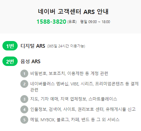 네이버 고객센터 음성 ARS 세부 연결 번호
