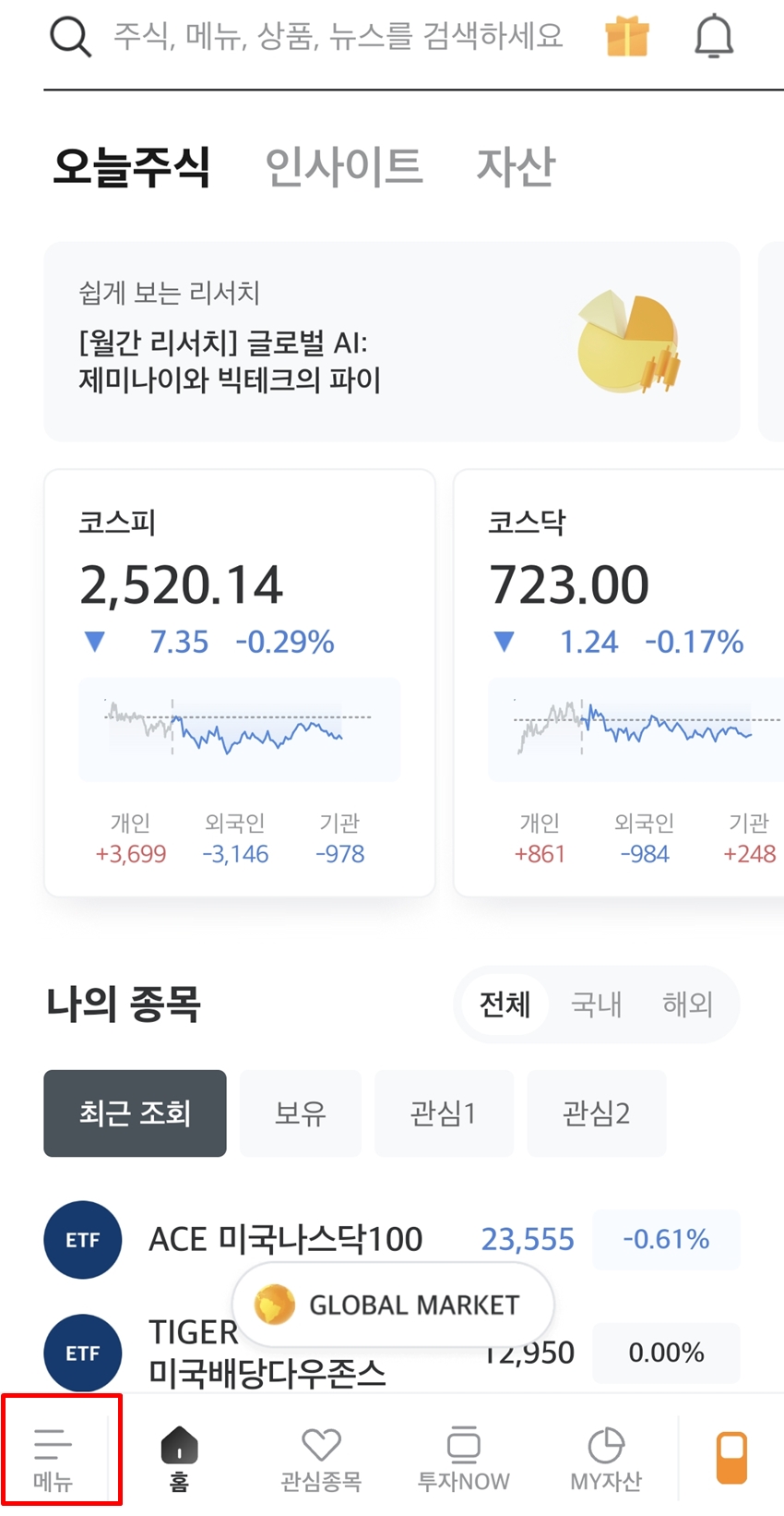 미래에셋증권 배당금 확인을 위해 미래에셋 주식 어플을 들어갑니다.