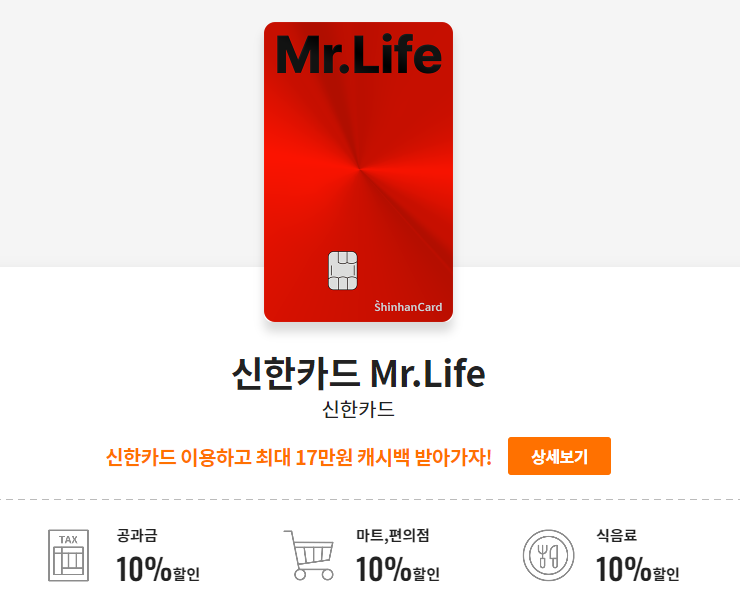 생활비 공과금 할인카드로 좋은 신한카드 Mr.life 실사용 추천