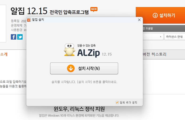 4. 알집 클릭 후 설치 시작을 눌러줍니다.