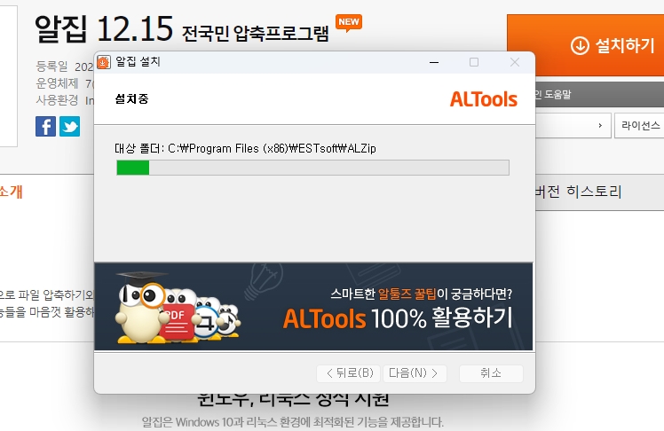 3. 설치 파일을 준비 중인 알집입니다. 알집은 지속적으로 버전 업데이트를 진행하고 있습니다.