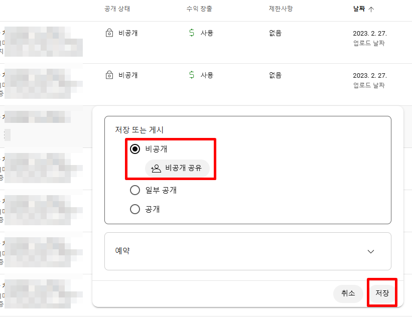 유튜브 영상 비공개 개별 설정