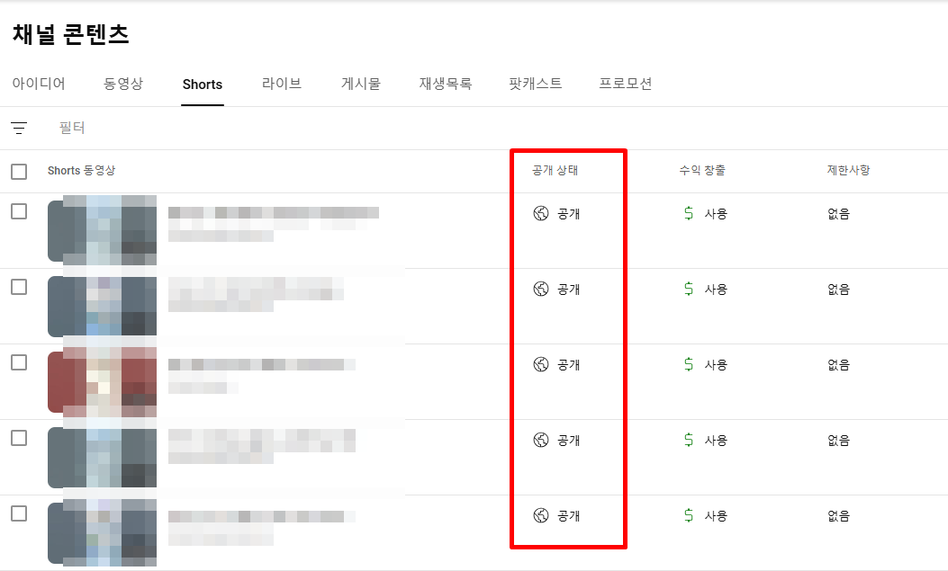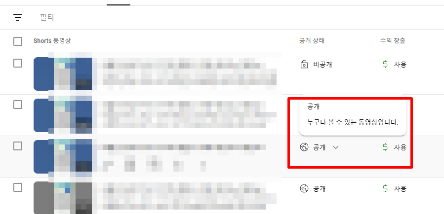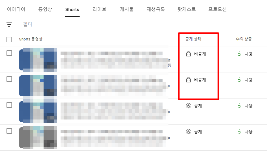 유튜브 영상 쇼츠 일반 비공개 방법 개별 일괄 초간단