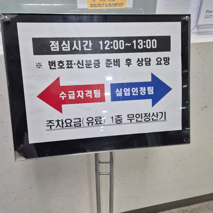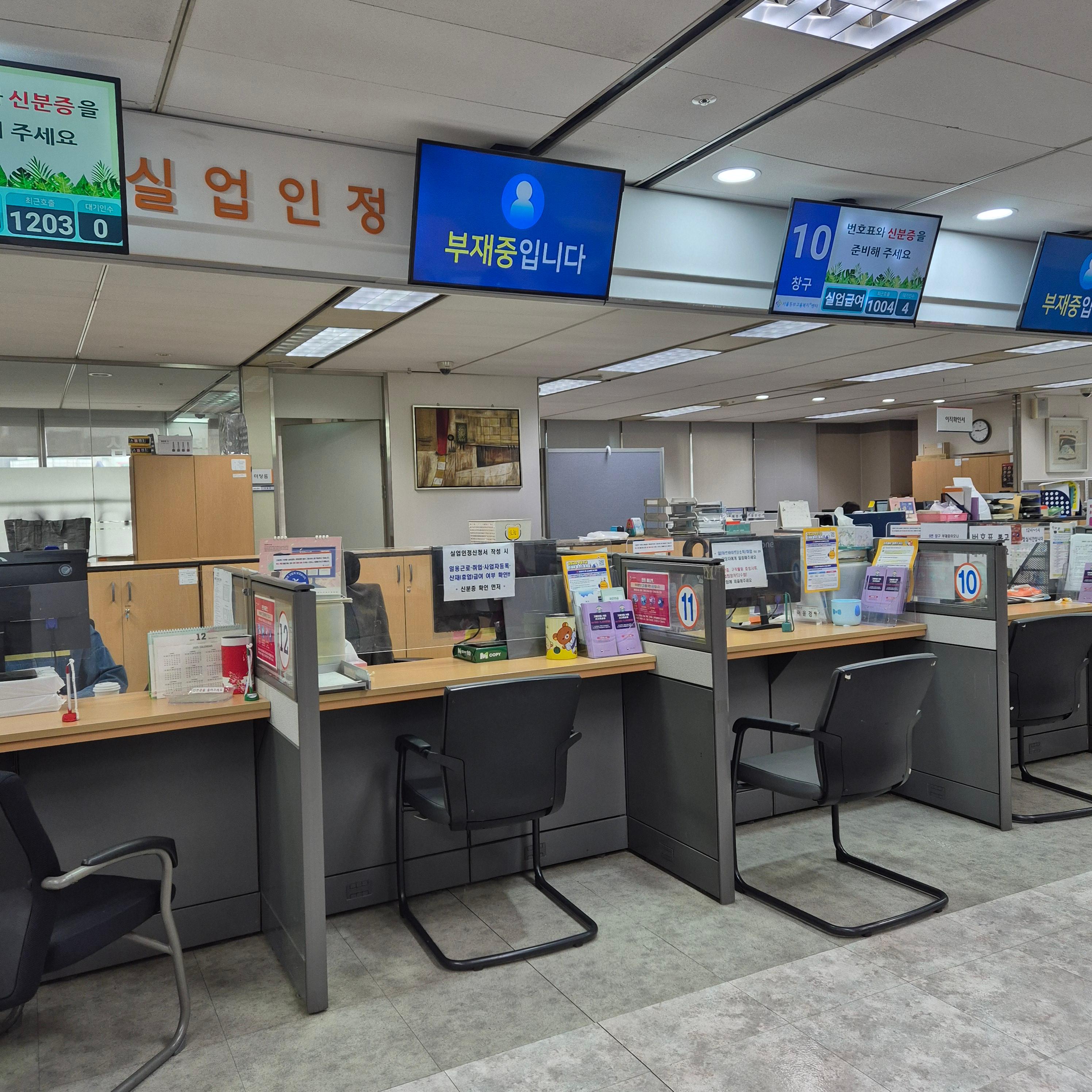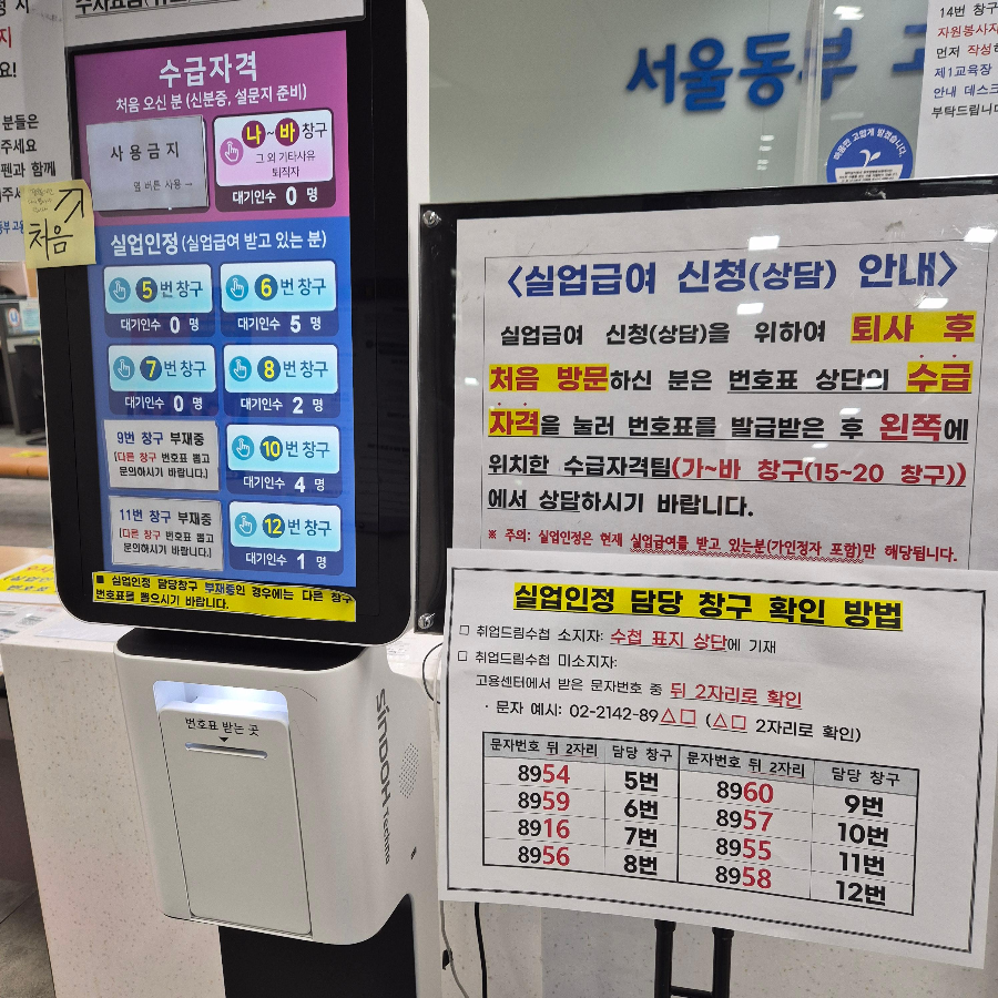 방문 후 실업급여 담당창구(실업인정팀)로 방문합니다. 담당창구는 취업드림수첩 앞에 번호로 쓰여있습니다. 동부고용센터 점심시간은 12시부터 1시까지로 이 시간은 피해서 방문해야 합니다.