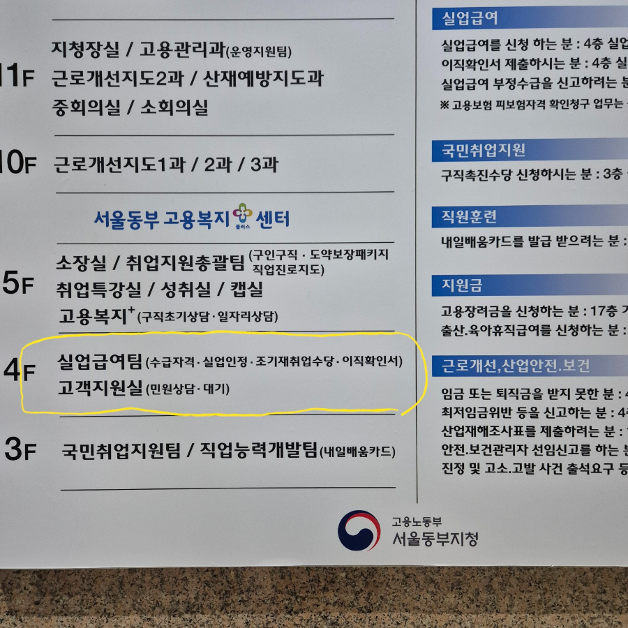 저의 경우 관할 장소로 동부고용센터로 방문했습니다. 동관으로 가면 됩니다.
