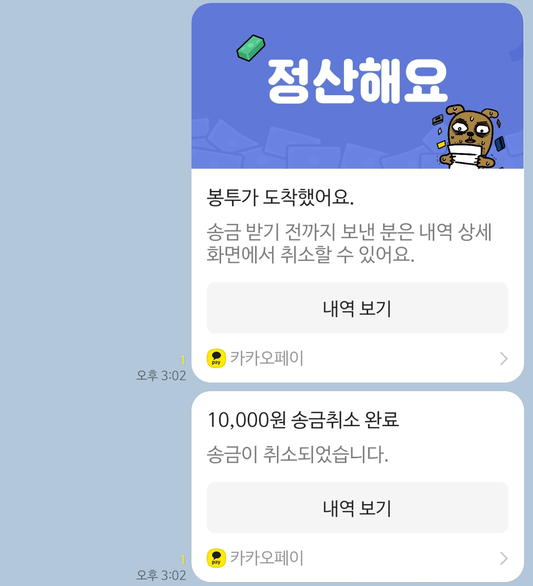 카카오톡 송금방법 오류 시 송금취소 2가지 방법 알림메시지 내용 확인